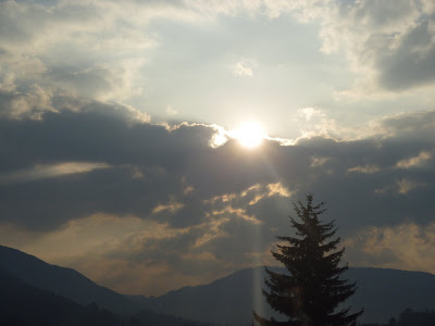 I awoke of a morning to this bit of light coming through the curtain. We don't live in the land of spectacular sunrises and sunsets. In all truth, the ones I see here pale in comparison to others on the Pacific Coast, on the fields of the American midwest. I have longed for the passionate throbbing of more ferocious vistas, aggressive weather, the terrifying growl of a nature that is more powerful than I. Somehow, the gentle sway of this spellbinding countryside leaves me frustrated at times.