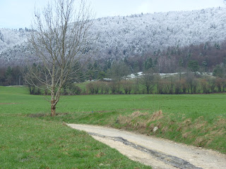 Vreni and Fritz. He was outdoors "purging the forest" when I stopped by with 5 kids in tow. "Vreni will get you something to drink," says he. And the smiling woman whose back is literally cracked in two, forcing her to walk in an L position, her head hanging nearly to the ground, poured us little plastic cups of orange juice out on her front stoop and sent us on our way with chocolate.